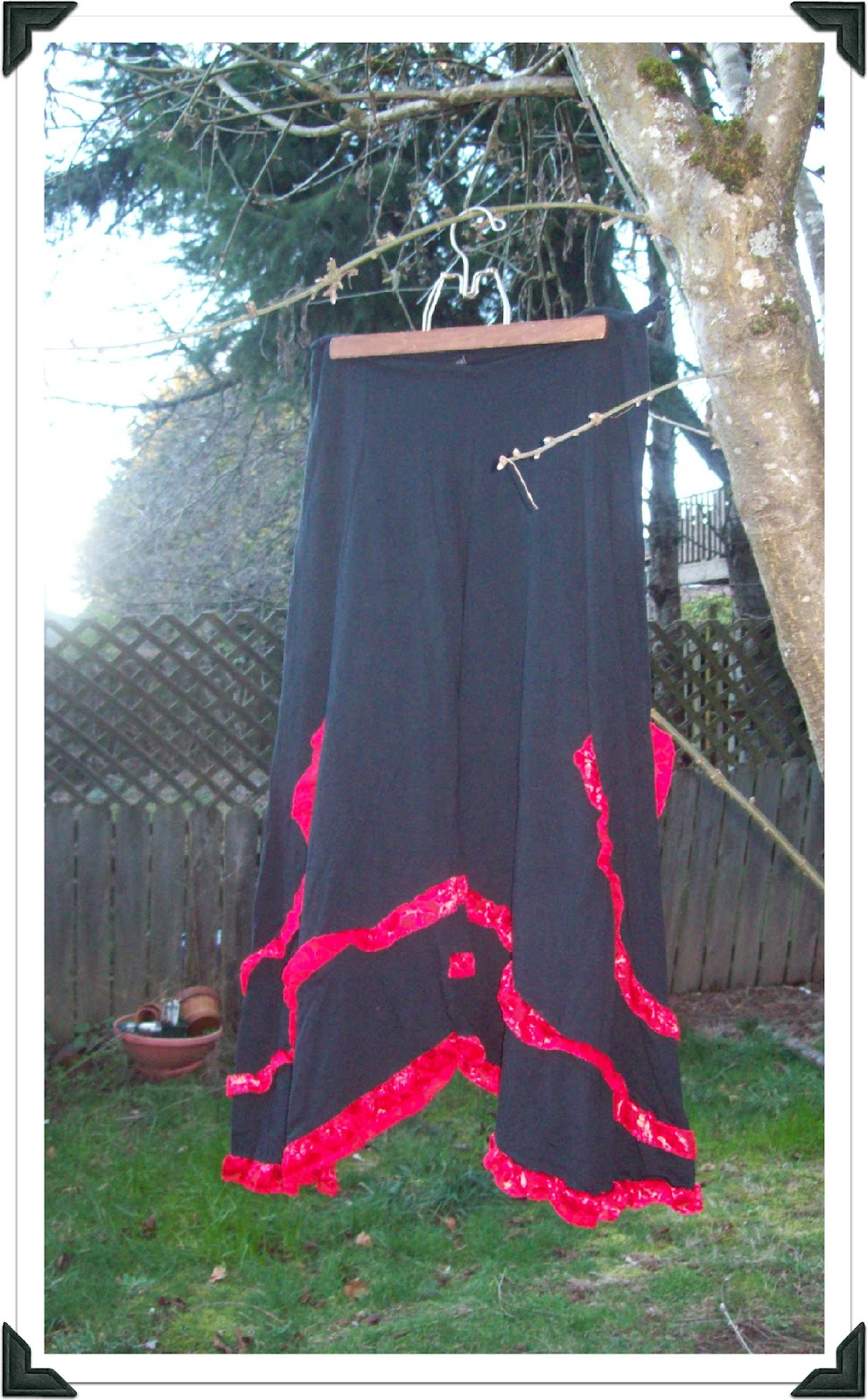 Sexy and sassy black cotton flared-leg gypsy pants, accented with red ruffles! Fits Medium-Large.